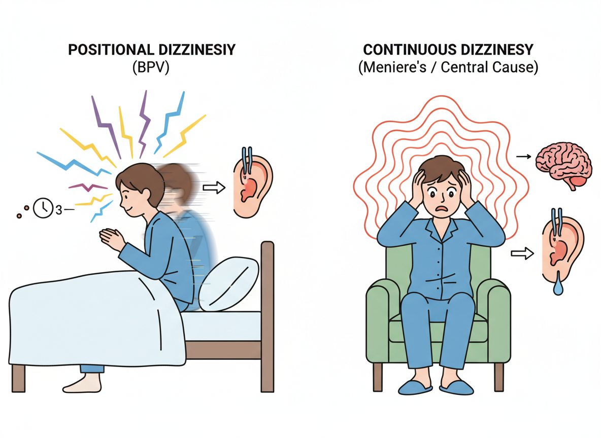 가장 먼저 해야 할 일은 이 어지러움의 '출처'를 파악하는 것입니다. 전문 용어로는 말초성(귀)이냐 중추성(뇌)이냐를 따지는 과정이죠. 아주 쉬운 구별법이 있습니다.만약 천장이나 벽이 시계 방향으로 뱅글뱅글 도는 '회전성 어지러움'이 강하다면, 이는 십중팔구 귀(전정기관)의 문제입니다.
