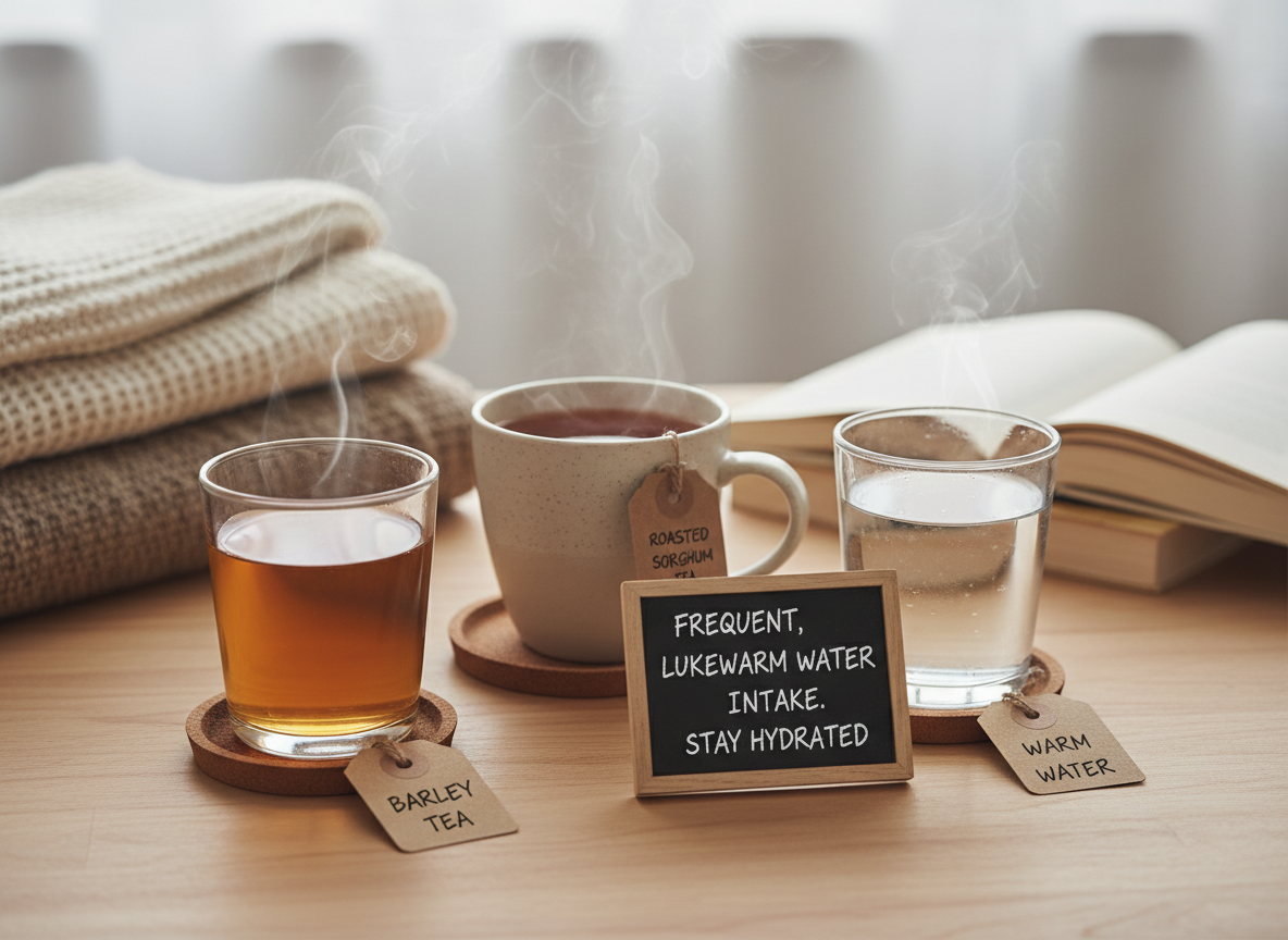 하루 8잔 이상의 미지근한 물을 마시는 것만으로도 호흡기 질환 예방에 큰 도움이 됩니다. 찬물보다는 체온과 비슷한 미지근한 물이 흡수도 빠르고 자극도 덜합니다. 맹물을 마시기 힘들다면 보리차나 작두콩차처럼 구수한 차를 수시로 마시는 것도 훌륭한 대안입니다.