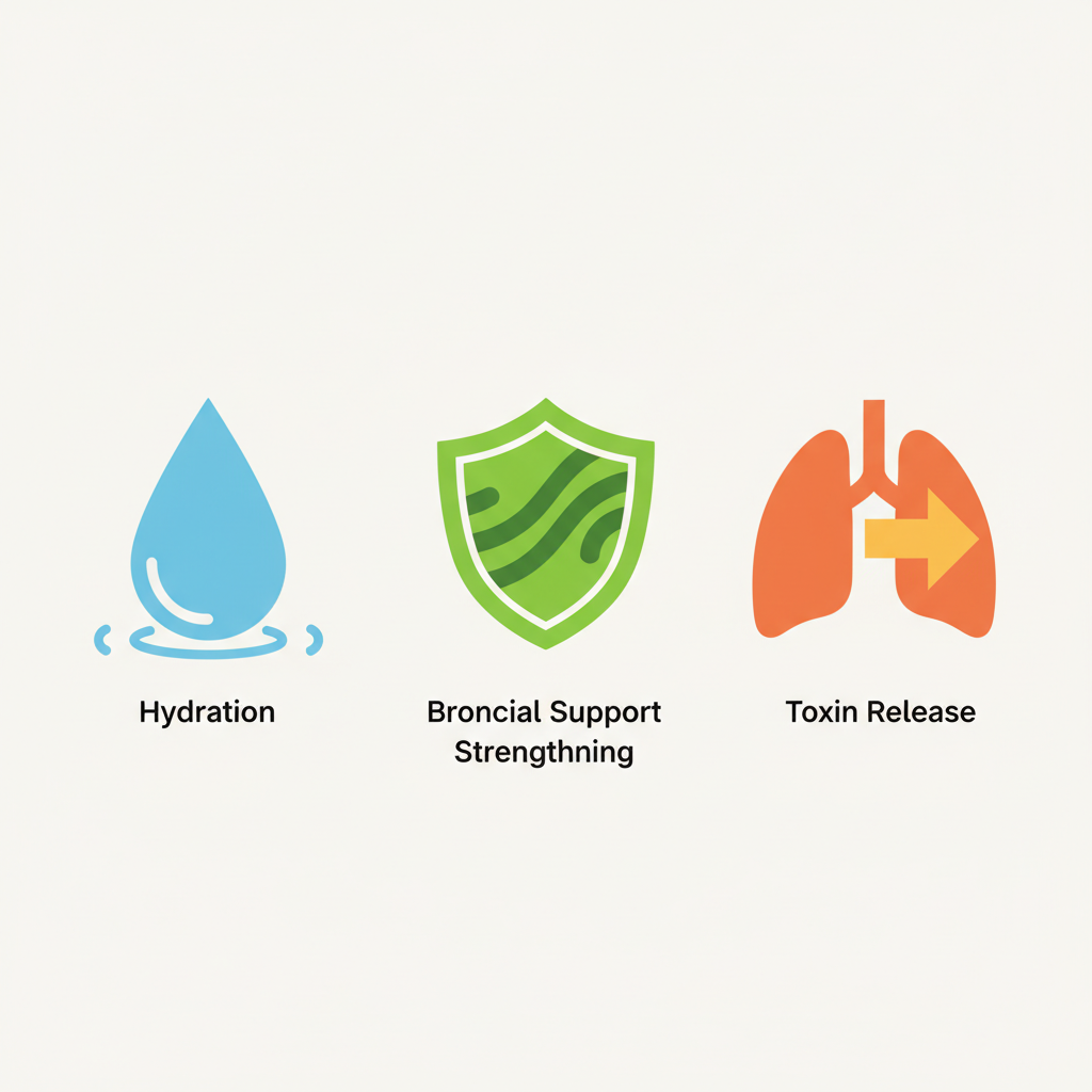 건강한 호흡기를 위해 오늘 꼭 기억해야 할 3가지는 다음과 같습니다.1. 수분은 기본 중의 기본: 미지근한 물을 수시로 마셔 기관지 점막을 항상 촉촉하게 유지하세요. 이것만 잘해도 절반은 성공입니다.