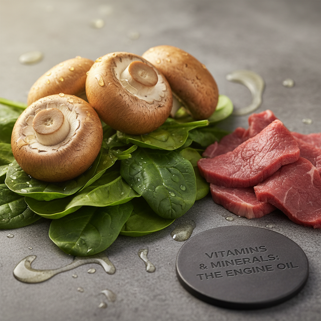 근육이 엔진이라면 비타민과 미네랄은 엔진오일입니다. 특히 비타민D가 부족하면 근력이 약해지고 지방 축적이 쉬워집니다. 철분은 산소를 근육으로 운반해 지방을 태우는 데 필수적입니다. 여성분들의 경우 철분 부족으로 대사 기능이 떨어지는 경우가 많으니, 시금치나 붉은 살코기, 혹은 영양제를 통해 부족하지 않게 채워주는 것이 좋습니다.