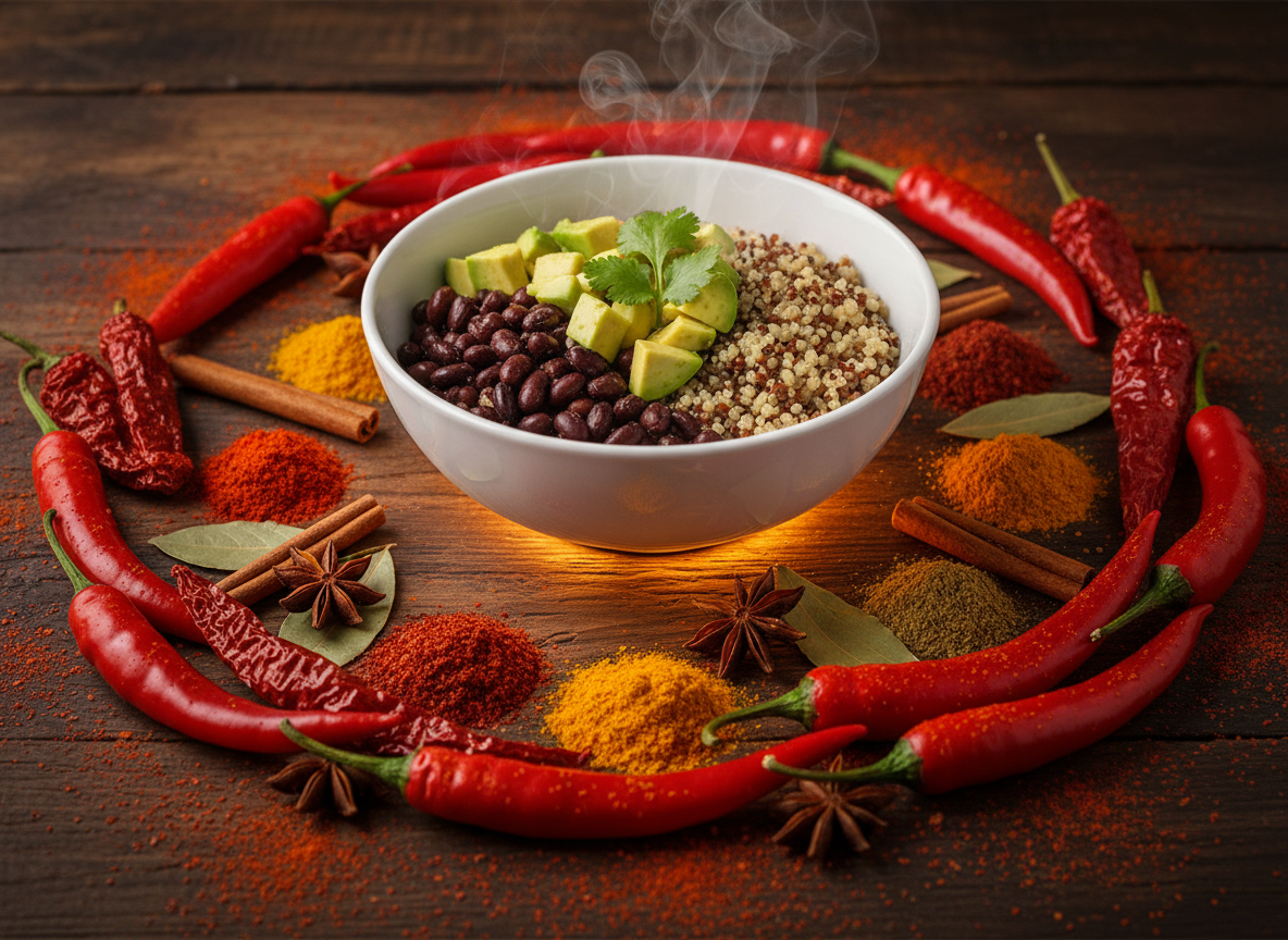 고추의 캡사이신 성분은 교감신경을 자극해 심박수를 높이고 몸에 열을 냅니다. 일종의 '부스터' 버튼을 누르는 것과 비슷하죠. 식사 때 청양고추를 곁들이거나 매콤한 향신료를 활용하면 식사 후 칼로리 소모를 약 10~20% 정도 일시적으로 높일 수 있습니다. 단, 위장이 약하다면 무리하지 마시고 적당한 선에서 즐기는 것이 좋습니다.