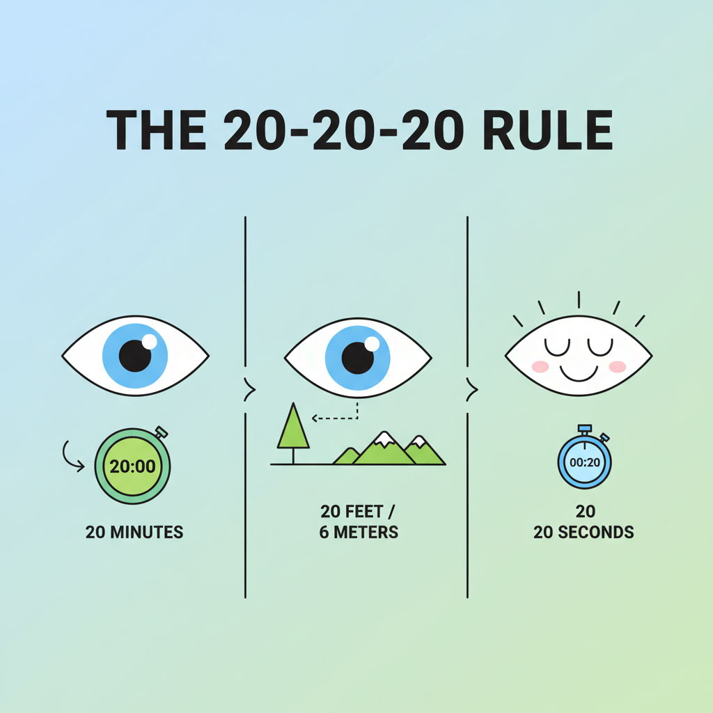 - 20-20-20 규칙: 20분마다 20초씩 20피트(약 6미터) 먼 곳을 바라보세요.