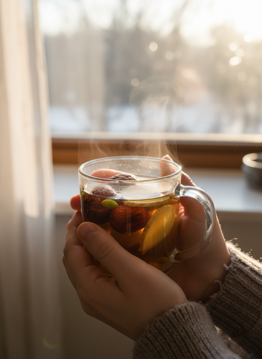 환절기마다 감기로 고생하는 분들에게 대추차는 정말 좋은 선택이 될 수 있어요. 대추에 함유된 비타민C와 폴리페놀 성분은 항산화 작용을 하여 면역력을 높이는 데 기여합니다. 강력한 항산화 효과 덕분에 몸의 방어 체계를 튼튼하게 만들어 잔병치레를 줄이는 데도 도움을 주죠.