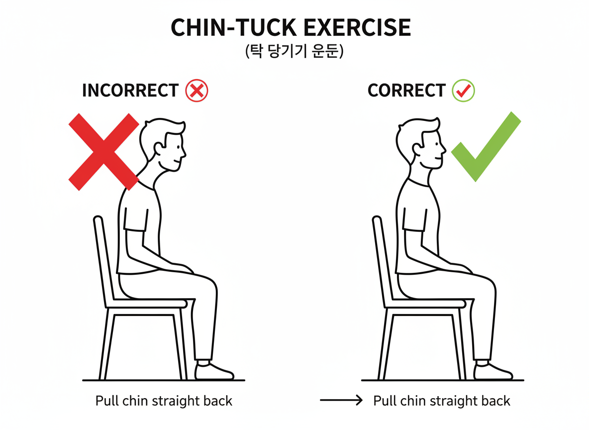 - ✅ 자세가 곧 진통제다: 모니터 높이를 눈높이로 맞추고, 수시로 '이중턱 만들기' 운동을 통해 목의 부담을 줄여주세요.