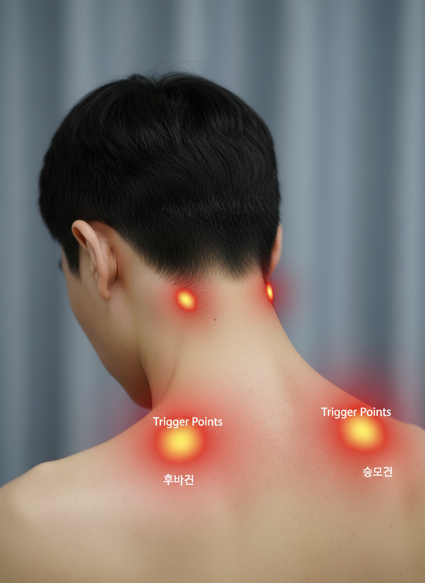 통증이 머리 자체에서 불쑥 나타나는 것이 아니라, 뒷목이나 어깨 죽지에서 시작해 뒷머리를 타고 옆머리, 눈 주변까지 퍼져나가는 양상을 보입니다. 마치 전기 신호가 흐르듯 찌릿하게 올라오는 느낌이 든다면 99%입니다.