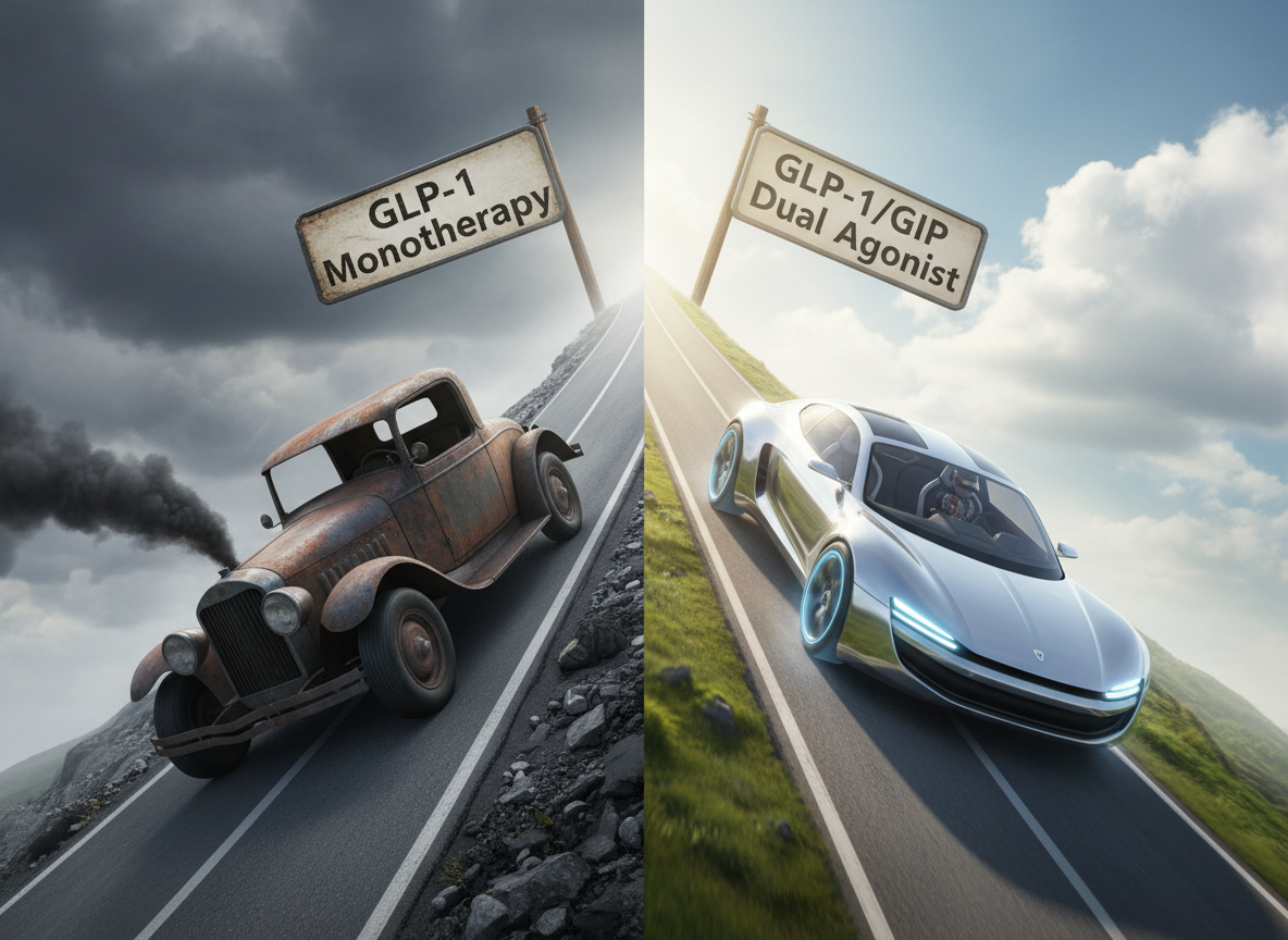 우리가 흔히 알고 있는 기존의 비만 치료제들은 대부분 GLP-1이라는 호르몬 하나를 모방하는 방식이었습니다. 쉽게 비유하자면, 엔진 하나로 달리는 자동차였던 셈이죠. 이 호르몬은 뇌에 '나 배불러, 그만 먹어'라는 신호를 보내 식욕을 억제하는 역할을 합니다. 그런데 마운자로는 여기에 GIP라는 또 다른 호르몬을 더했습니다. 이것이 바로 마운자로가 '게임 체인저'로 불리는 이유입니다.