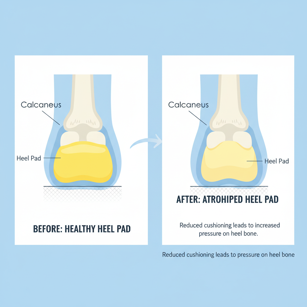 | 지방 패드 위축 | 충격 흡수 저하로 인한 통증 | 쿠션 좋은 신발, 깔창 |
