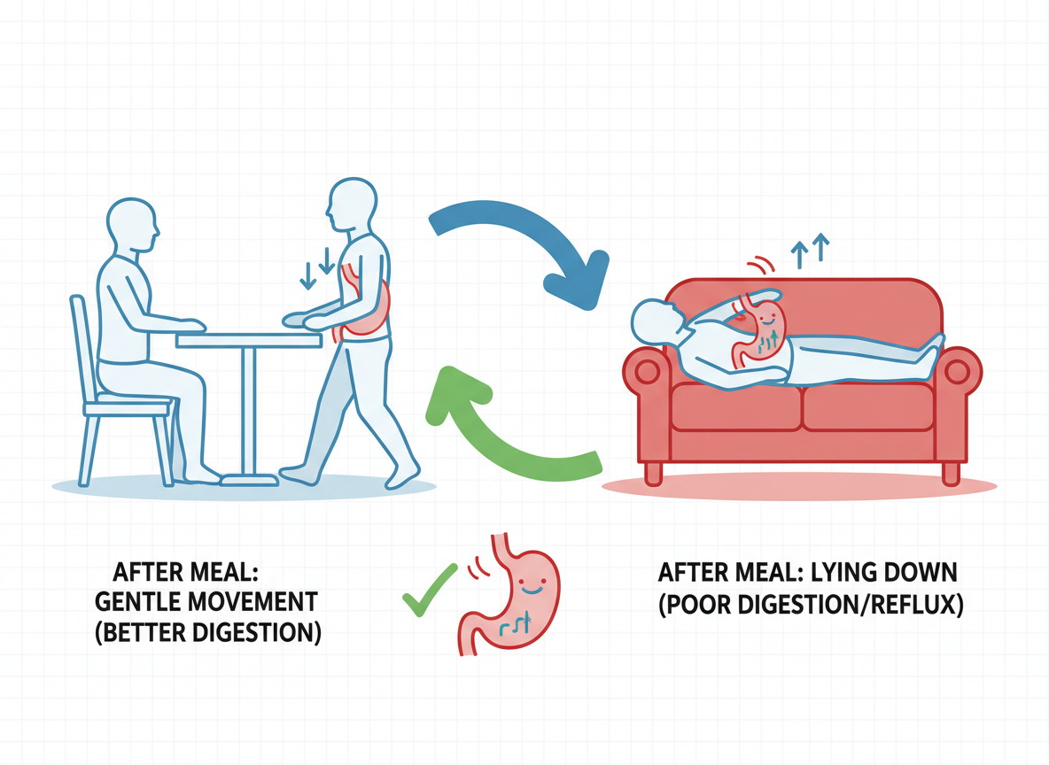 식습관만큼 중요한 것이 바로 생활 자세입니다. 식사 후 바로 눕는 것은 위장에 '역류해라'라고 주문을 외우는 것과 같습니다. 최소 2시간은 앉아있거나 가볍게 산책하며 소화시킬 시간을 주어야 합니다.