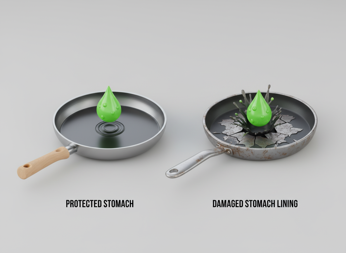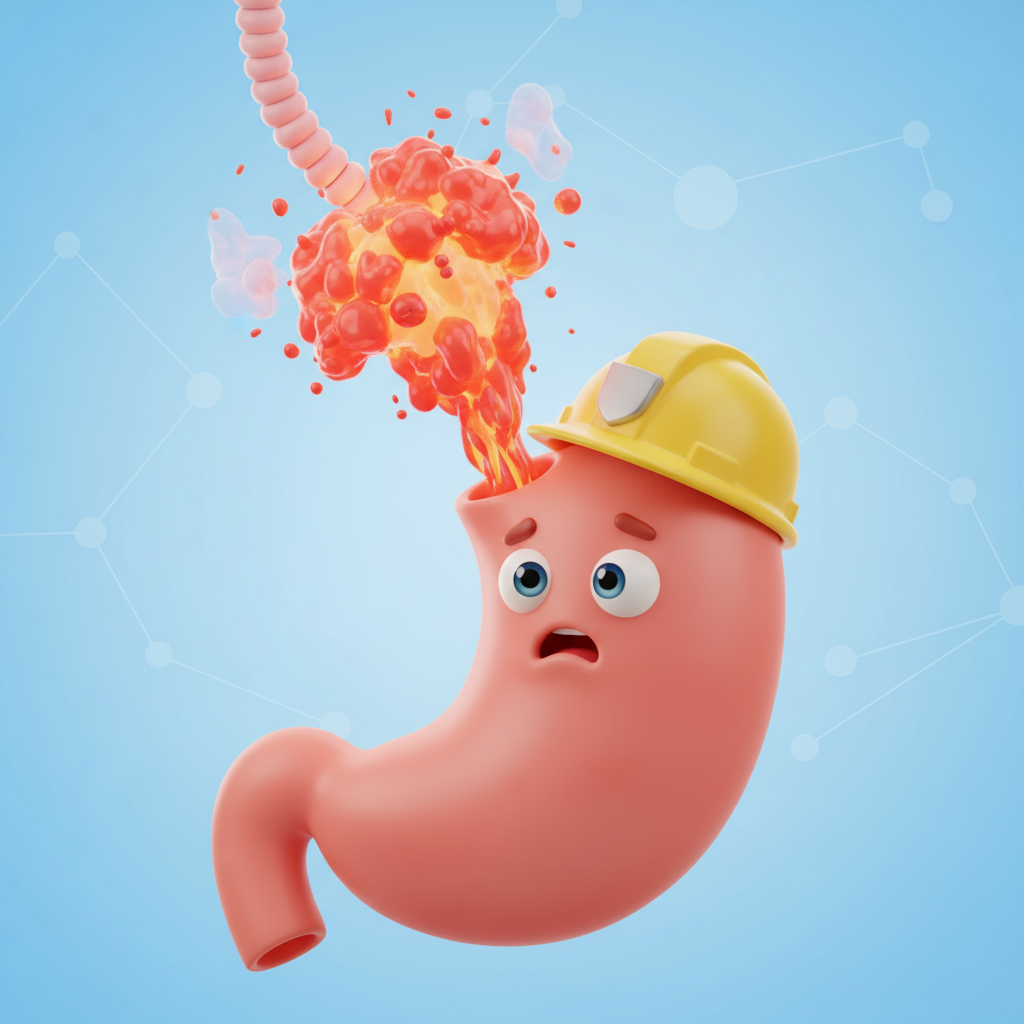 이 상황을 쉽게 비유하자면, '성능 좋은 코팅 프라이팬'과 같습니다. 코팅이 잘 되어 있을 때는 아무리 센 불에 요리해도 음식이 눌어붙지 않죠. 하지만 맵고 짠 음식, 과음, 스트레스로 인해 이 코팅(점막)이 벗겨지면 어떻게 될까요? 뜨거운 위산이 맨살 같은 위벽을 직접 자극하게 됩니다. 그게 바로 우리가 느끼는 '속 쓰림'의 실체입니다. 혹은 위와 식도 사이를 조여주는 밸브가 헐거워져 위산이 식도로 역류하는 경우도 있죠. 이것은 싱크대 배수관이 역류하는 것과 비슷한 이치입니다.