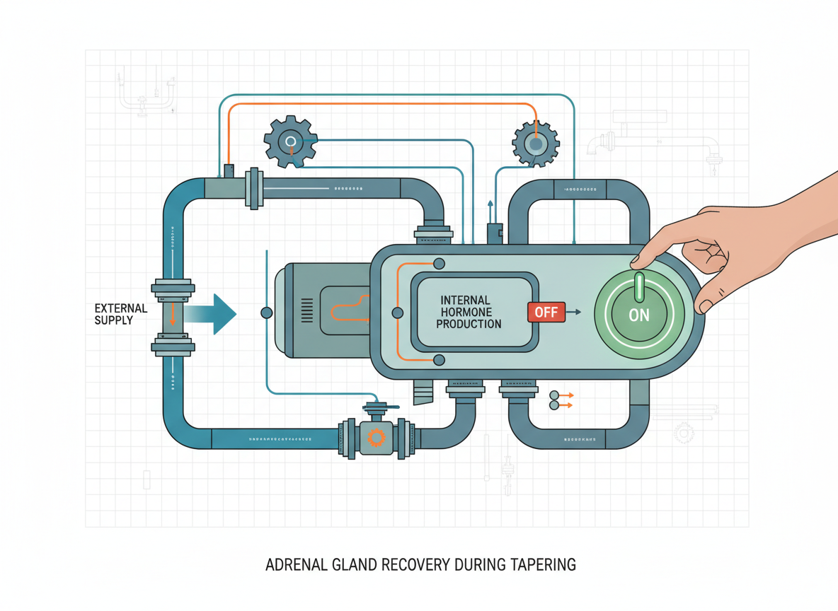 그렇다면 부작용이 무서워서 당장 약을 끊어야 할까요? 절대 아닙니다. 스테로이드 사용의 핵심은 '테이퍼링(Tapering)', 즉 서서히 줄여나가는 것입니다. 우리 몸은 외부에서 스테로이드가 들어오면 스스로 호르몬을 만드는 공장을 잠시 멈춥니다. 이때 갑자기 약을 끊어버리면 몸은 극심한 혼란, 즉 '리바운드 현상'을 겪게 됩니다.