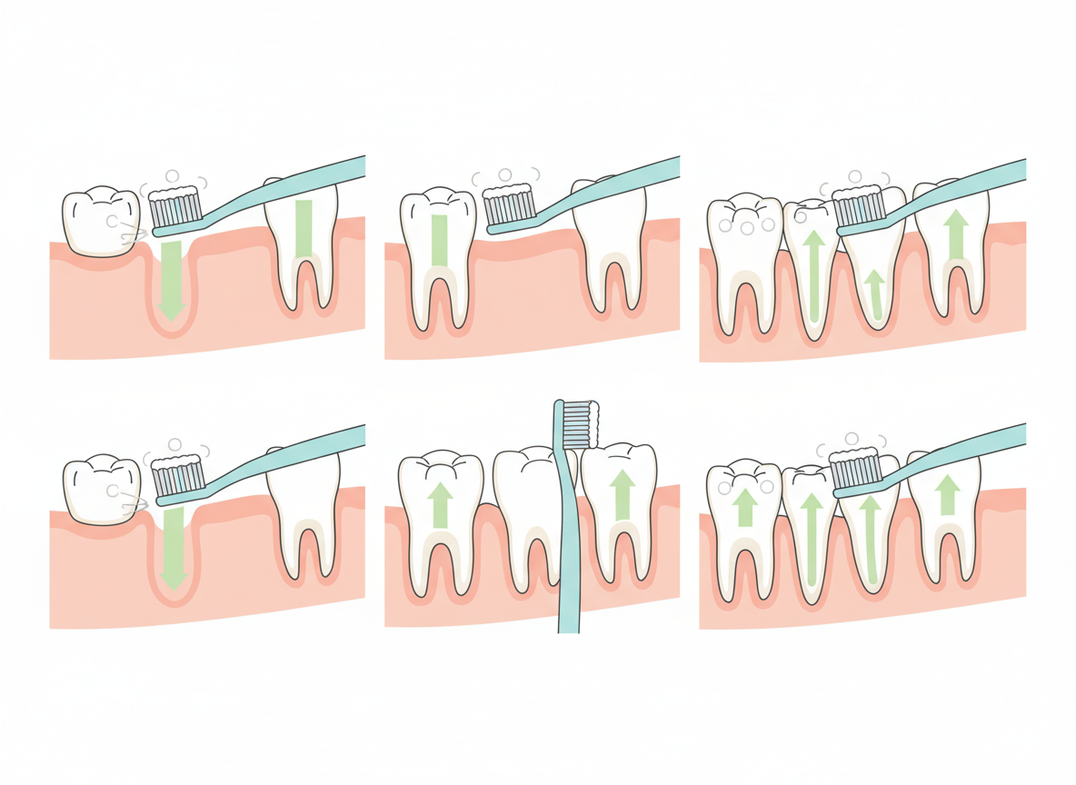 너무 강하게 옆으로 문지르거나 뻣뻣한 칫솔모를 사용하는 것은 잇몸에 불필요한 자극을 줍니다. 이게 반복되면 잇몸이 닳아 내려앉을 수 있어요. 부드러운 칫솔모로 잇몸에서 치아 방향으로 쓸어 올리듯 닦는 것이 중요합니다.