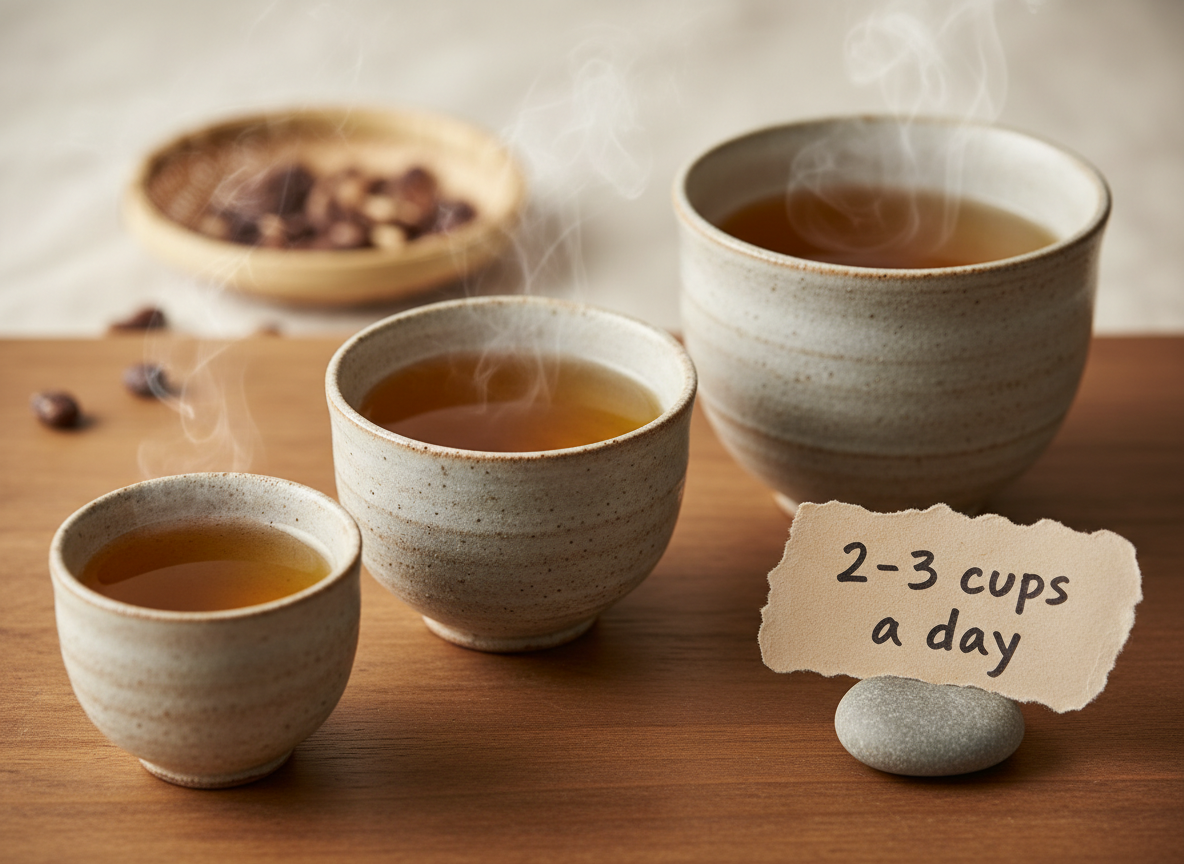 A: 작두콩차는 약성이 있는 차에 속하므로 물처럼 하루 종일 마시는 것은 권장하지 않습니다. 과다 섭취 시 장 운동이 너무 활발해져 설사를 유발할 수 있으니, 하루 2~3잔 정도 따뜻하게 즐기는 것이 가장 좋습니다.