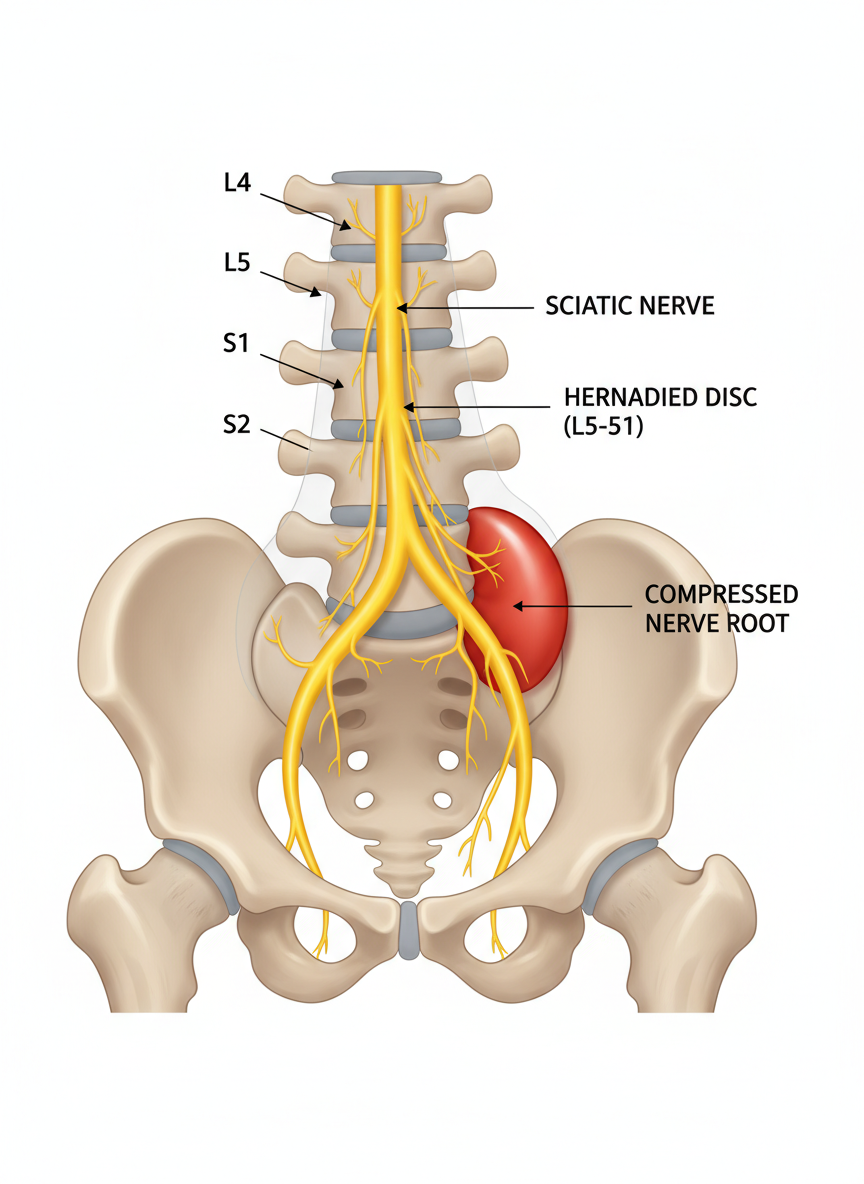 많은 분들이 헷갈려하시는 부분이 바로 '원인'입니다. 좌골신경통은 질병명이 아니라 '증상'입니다. 이 증상을 만드는 범인은 크게 두 가지로 나뉩니다. 첫 번째는 우리가 흔히 아는 '허리 디스크(요추 추간판 탈출증)'입니다. 튀어 나온 디스크가 척추에서 신경 뿌리를 누르는 것이죠. 두 번째는 '이상근 증후군'입니다. 엉덩이 깊숙한 곳에 있는 '이상근'이라는 근육이 뭉쳐서 그 밑을 지나가는 좌골신경을 꽉 쥐어짜는 경우입니다.