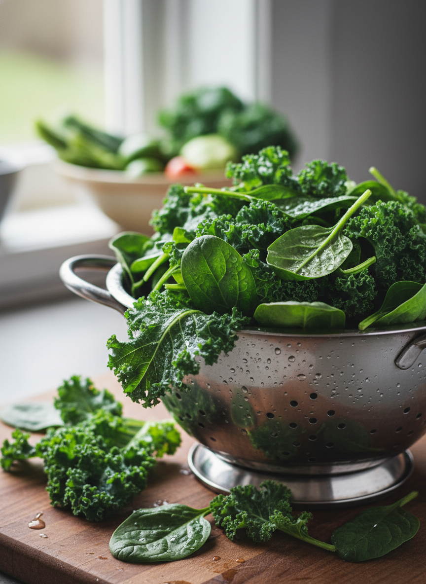 - 녹색 잎채소: 시금치, 케일