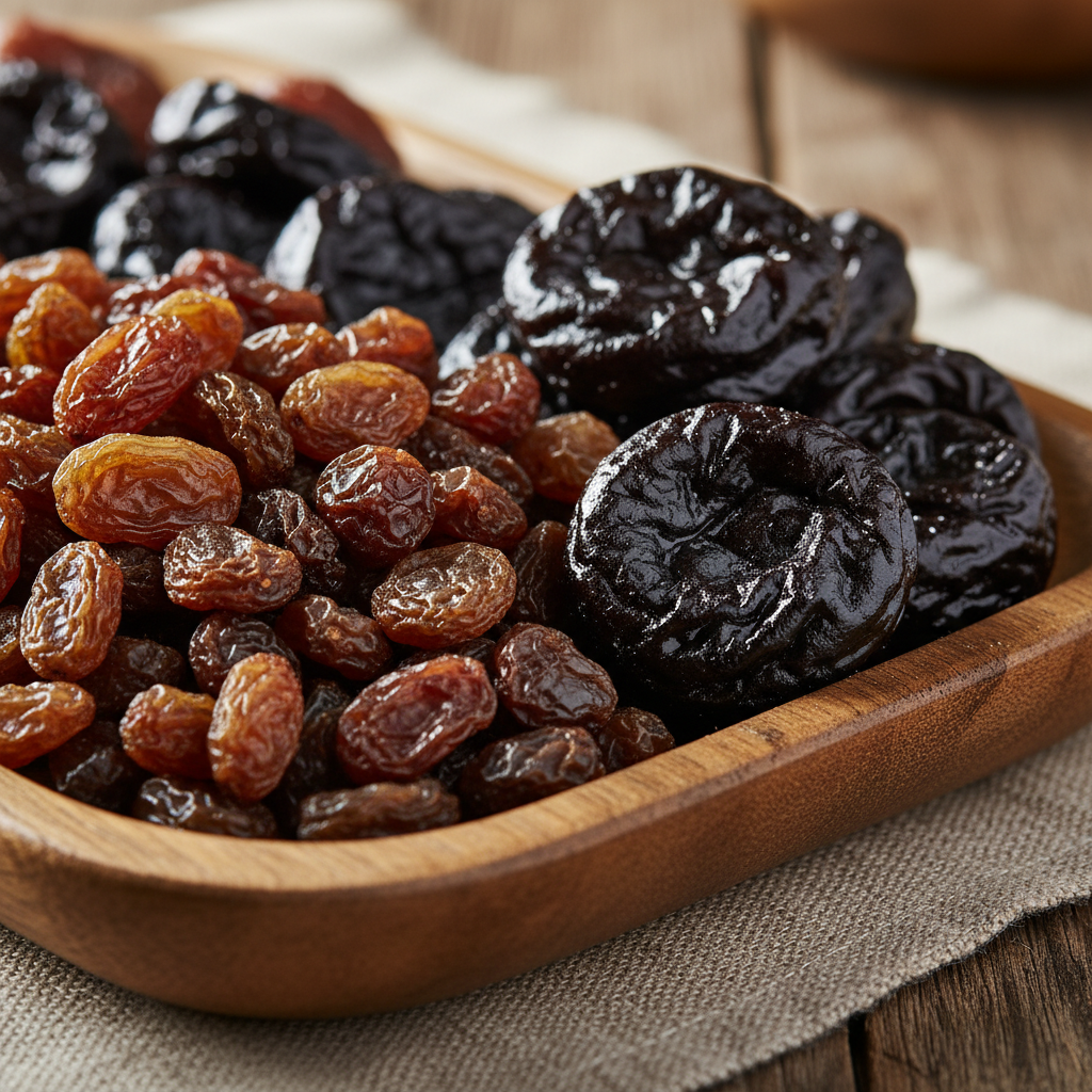 - 말린 과일: 건포도, 자두